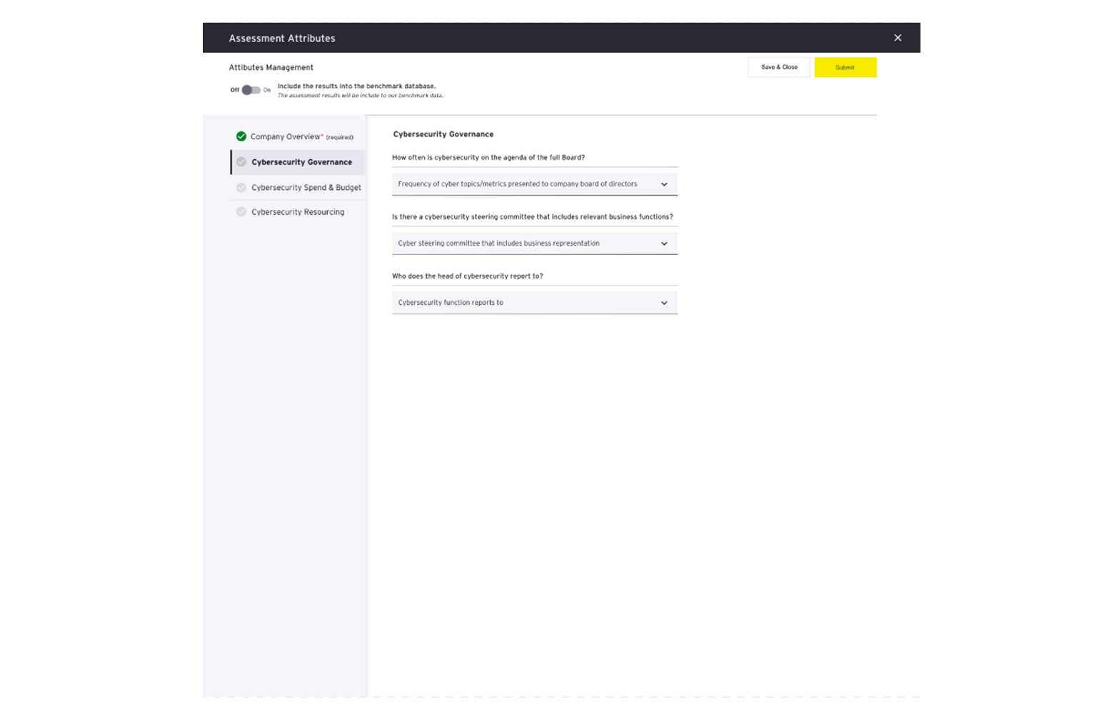 Screenshot of the cybersecurity governance section
